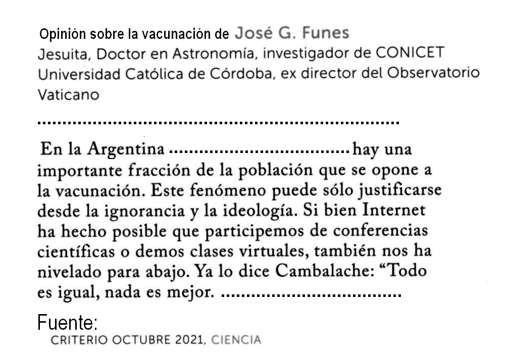 Opinión de José G. Funes, un científico jesuita sobre la vacunación